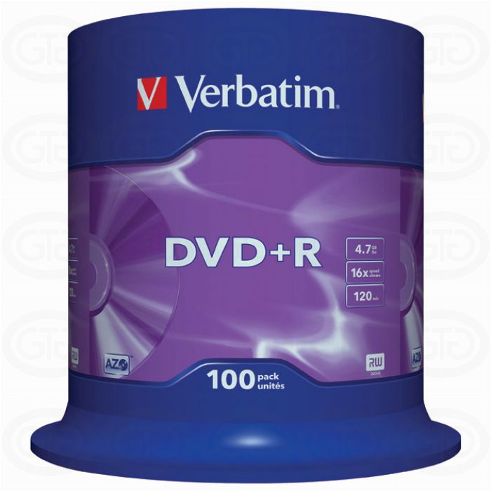 Dvd plus r 4,7gb 16x verbatim matt silver spindle 100/1